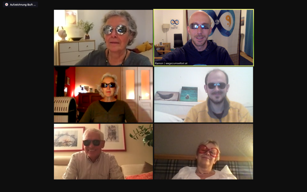 Die aktuelle Jahresgruppe nach der Meditation mit „Der Gewahrseinsbrille.“